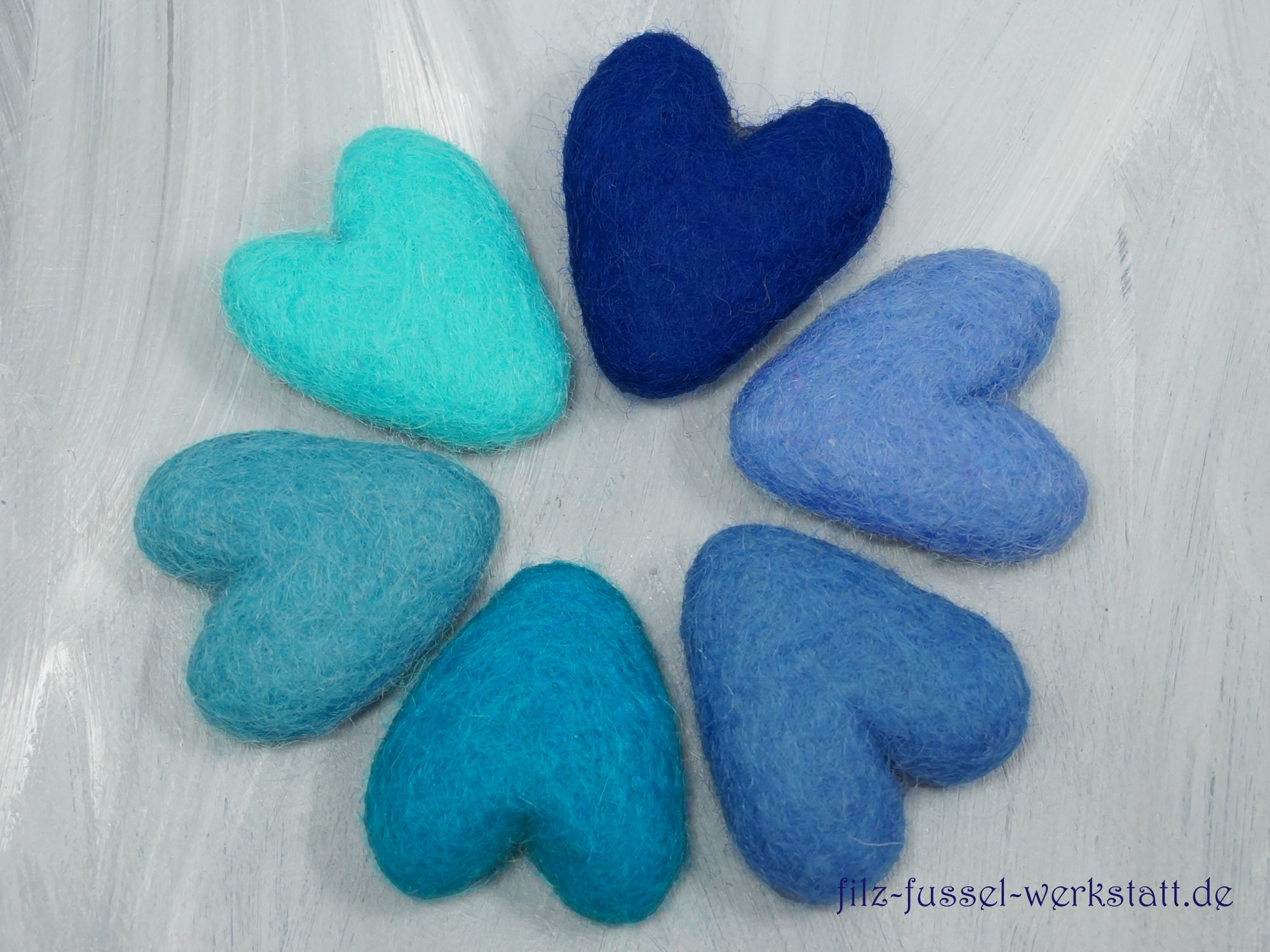 Filzherzen - farblich zusammengestelltes Set aus 6 Herzen