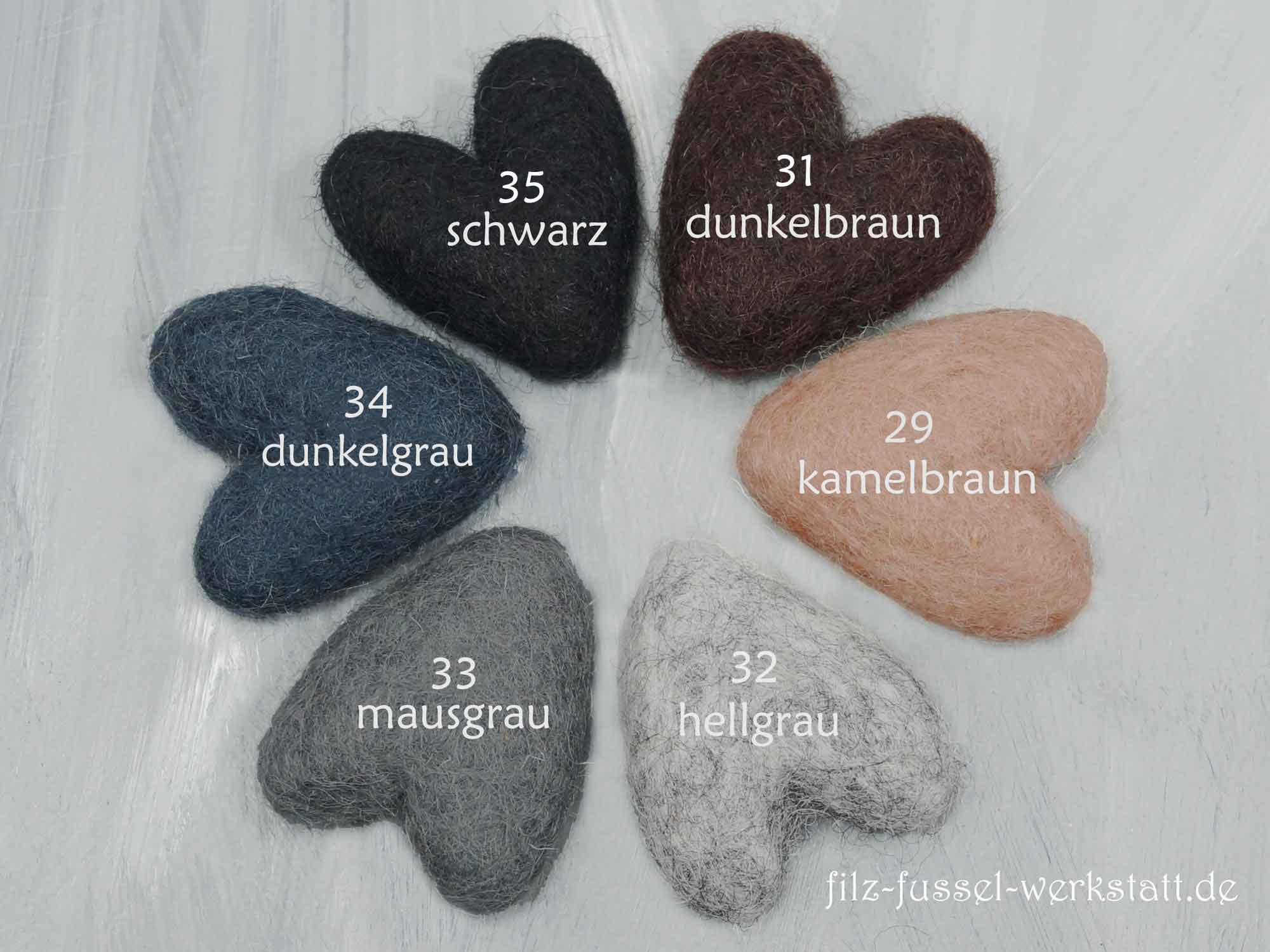 Filzherzen - farblich zusammengestelltes Set aus 6 Herzen
