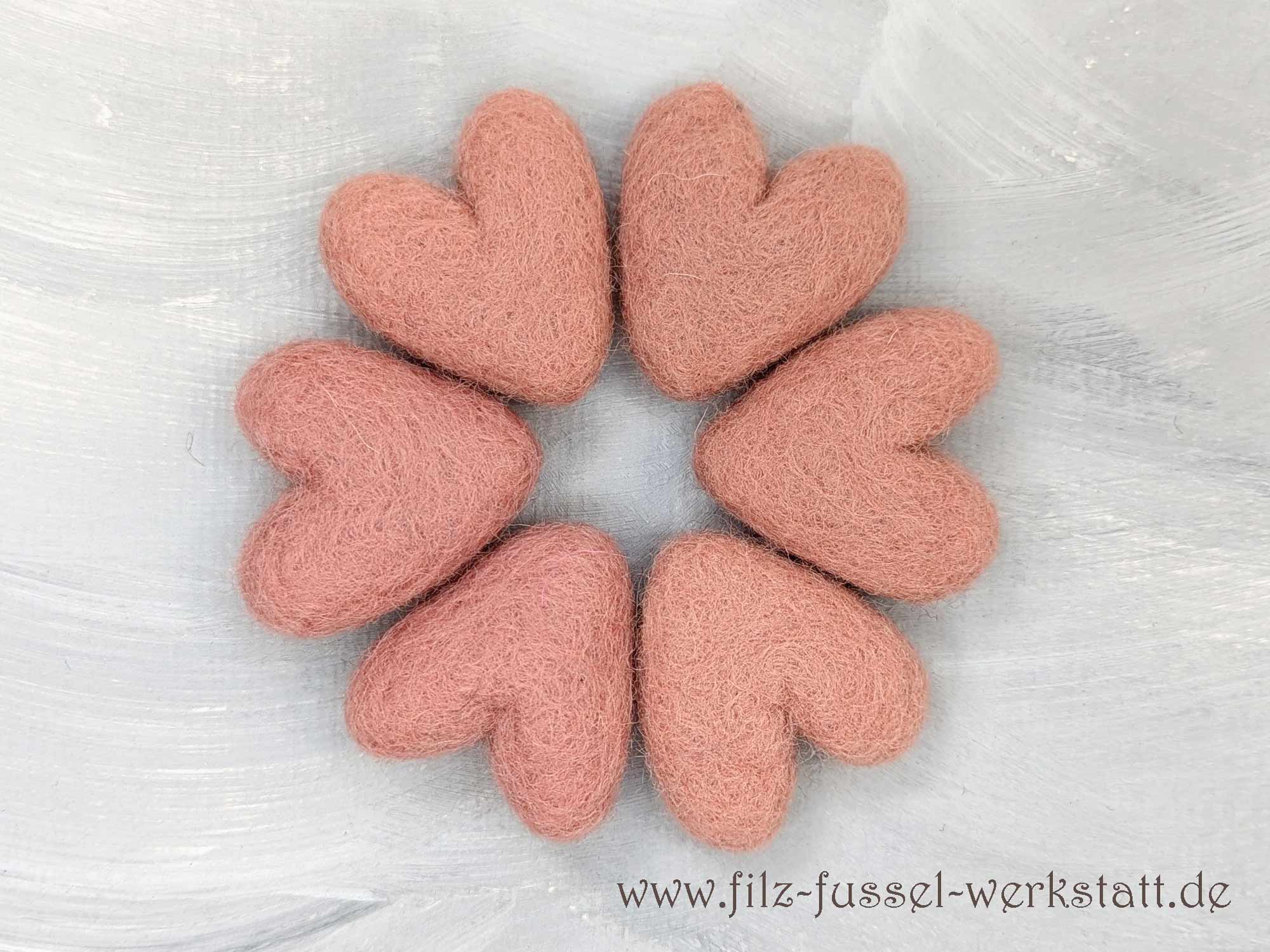 Die altrosafarbenen Herzen sind aus 100% Wolle (Filzwolle) handgefilzt und eignen sich hervorragend zum Basteln und Dekorieren. Aus den schönen Filzherzen - auch in Kombination mit Filzkugeln - entstehen tolle Girlanden, Mobile, Schlüsselanhänger, Weihnachtsschmuck oder sie zieren einfach als schöne Farbpunkte die Dekoration auf einem Tisch. Auch an einem Mobile machen sich die Filzsterne wunderbar.