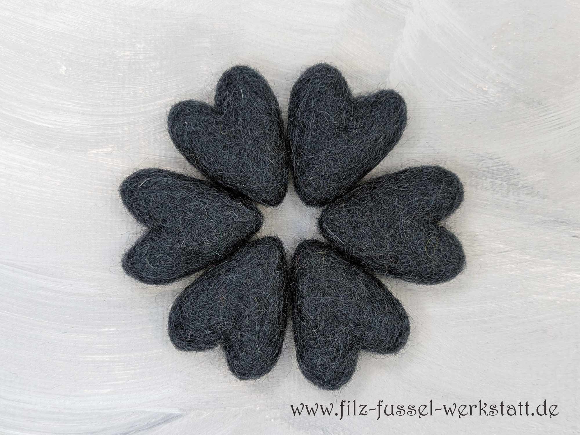 Die dunkelgrauen Herzen sind aus 100% Wolle (Filzwolle) handgefilzt und eignen sich hervorragend zum Basteln und Dekorieren. Aus den schönen Filzherzen - auch in Kombination mit Filzkugeln - entstehen tolle Girlanden, Mobile, Schlüsselanhänger, Weihnachtsschmuck oder sie zieren einfach als schöne Farbpunkte die Dekoration auf einem Tisch. Auch an einem Mobile machen sich die Filzsterne wunderbar.