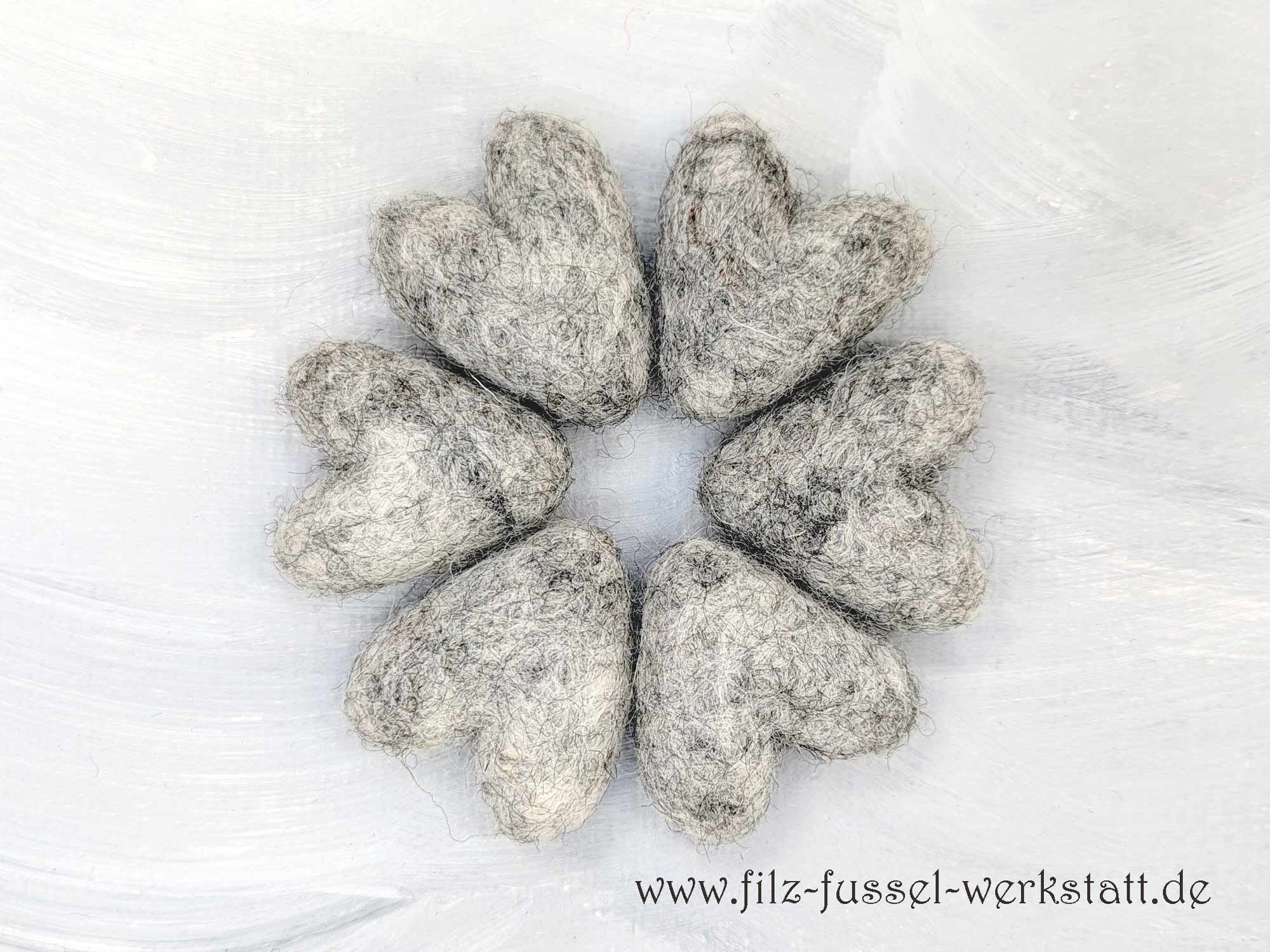 Die hellgrauen Herzen sind aus 100% Wolle (Filzwolle) handgefilzt und eignen sich hervorragend zum Basteln und Dekorieren. Aus den schönen Filzherzen - auch in Kombination mit Filzkugeln - entstehen tolle Girlanden, Mobile, Schlüsselanhänger, Weihnachtsschmuck oder sie zieren einfach als schöne Farbpunkte die Dekoration auf einem Tisch. Auch an einem Mobile machen sich die Filzsterne wunderbar.