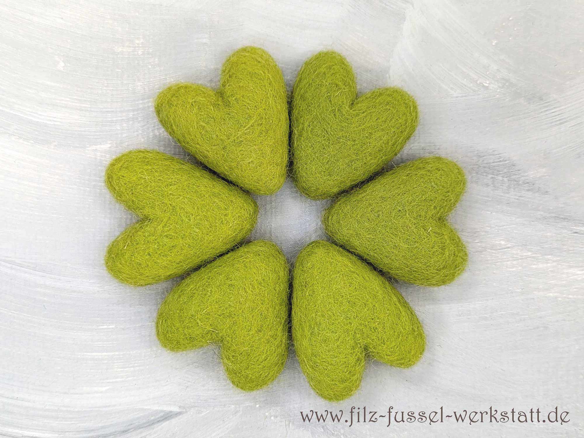 Die hellgrünen Herzen sind aus 100% Wolle (Filzwolle) handgefilzt und eignen sich hervorragend zum Basteln und Dekorieren. Aus den schönen Filzherzen - auch in Kombination mit Filzkugeln - entstehen tolle Girlanden, Mobile, Schlüsselanhänger, Weihnachtsschmuck oder sie zieren einfach als schöne Farbpunkte die Dekoration auf einem Tisch. Auch an einem Mobile machen sich die Filzsterne wunderbar.