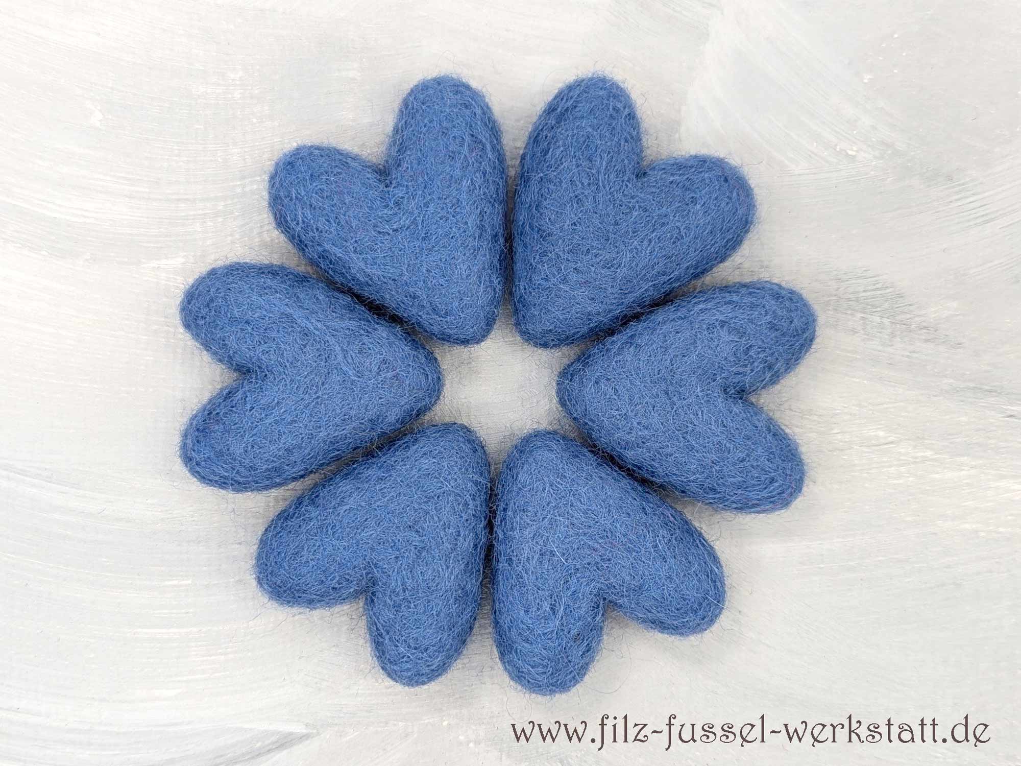 Die kobaltblauen Herzen sind aus 100% Wolle (Filzwolle) handgefilzt und eignen sich hervorragend zum Basteln und Dekorieren. Aus den schönen Filzherzen - auch in Kombination mit Filzkugeln - entstehen tolle Girlanden, Mobile, Schlüsselanhänger, Weihnachtsschmuck oder sie zieren einfach als schöne Farbpunkte die Dekoration auf einem Tisch. Auch an einem Mobile machen sich die Filzsterne wunderbar.