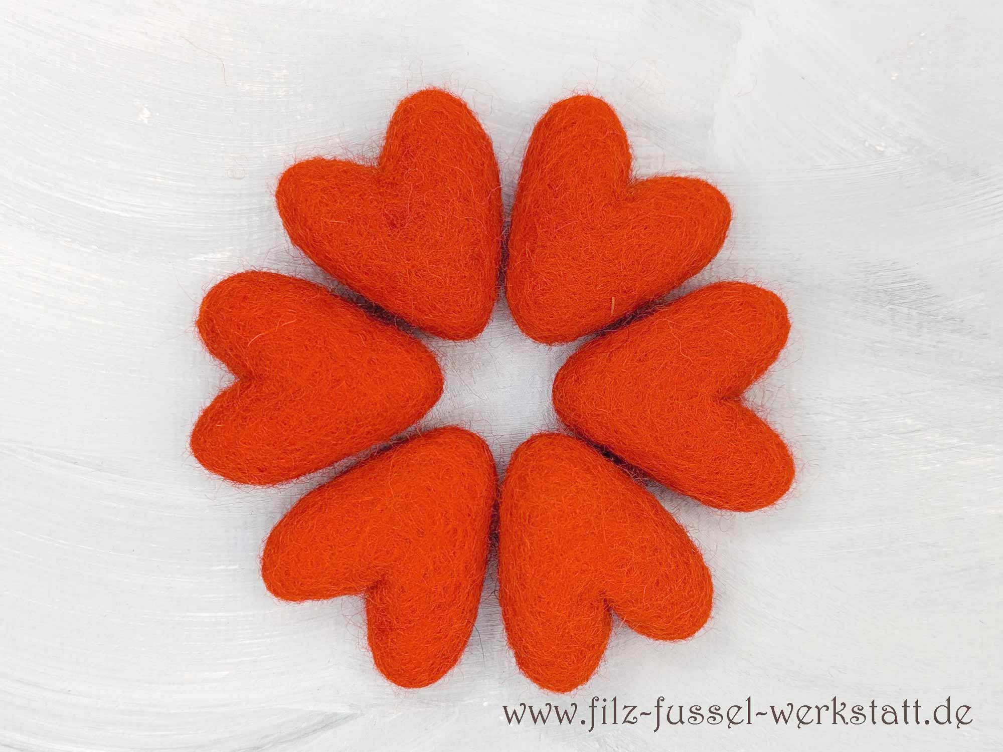 Die leuchtorangen Herzen sind aus 100% Wolle (Filzwolle) handgefilzt und eignen sich hervorragend zum Basteln und Dekorieren. Aus den schönen Filzherzen - auch in Kombination mit Filzkugeln - entstehen tolle Girlanden, Mobile, Schlüsselanhänger, Weihnachtsschmuck oder sie zieren einfach als schöne Farbpunkte die Dekoration auf einem Tisch. Auch an einem Mobile machen sich die Filzsterne wunderbar.