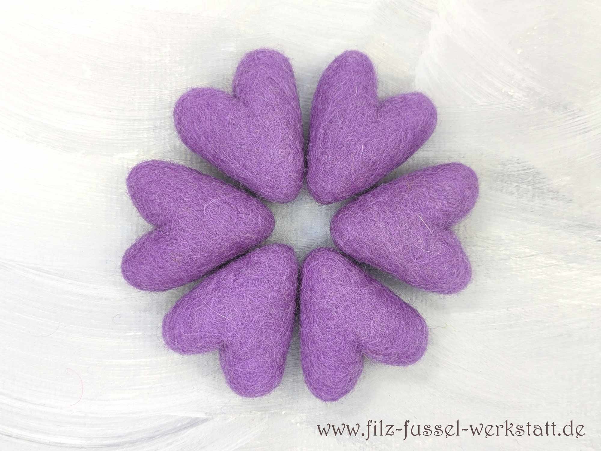 Die lilafarbenen Herzen sind aus 100% Wolle (Filzwolle) handgefilzt und eignen sich hervorragend zum Basteln und Dekorieren. Aus den schönen Filzherzen - auch in Kombination mit Filzkugeln - entstehen tolle Girlanden, Mobile, Schlüsselanhänger, Weihnachtsschmuck oder sie zieren einfach als schöne Farbpunkte die Dekoration auf einem Tisch. Auch an einem Mobile machen sich die Filzsterne wunderbar.