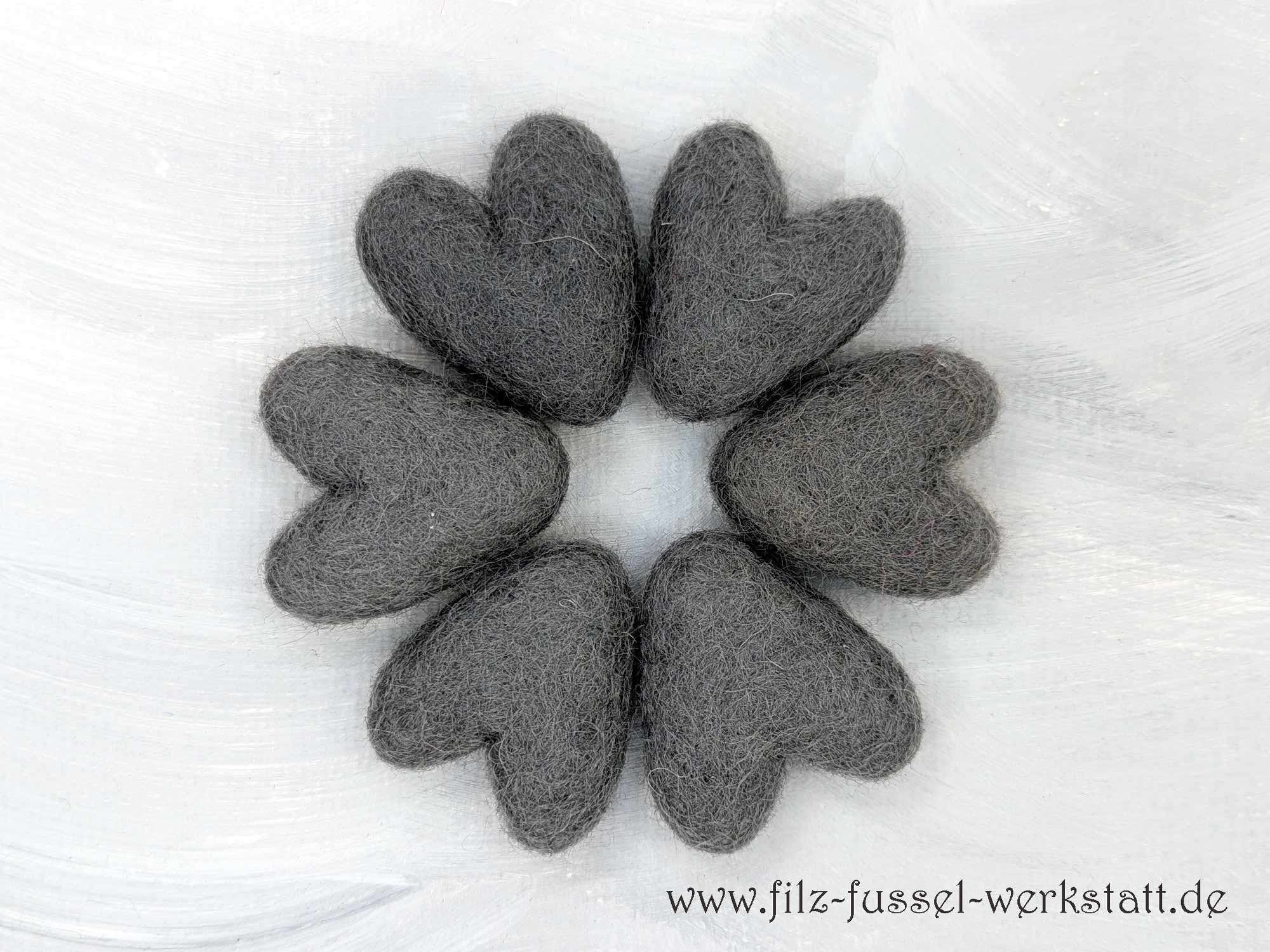Die mausgrauen Herzen sind aus 100% Wolle (Filzwolle) handgefilzt und eignen sich hervorragend zum Basteln und Dekorieren. Aus den schönen Filzherzen - auch in Kombination mit Filzkugeln - entstehen tolle Girlanden, Mobile, Schlüsselanhänger, Weihnachtsschmuck oder sie zieren einfach als schöne Farbpunkte die Dekoration auf einem Tisch. Auch an einem Mobile machen sich die Filzsterne wunderbar.
