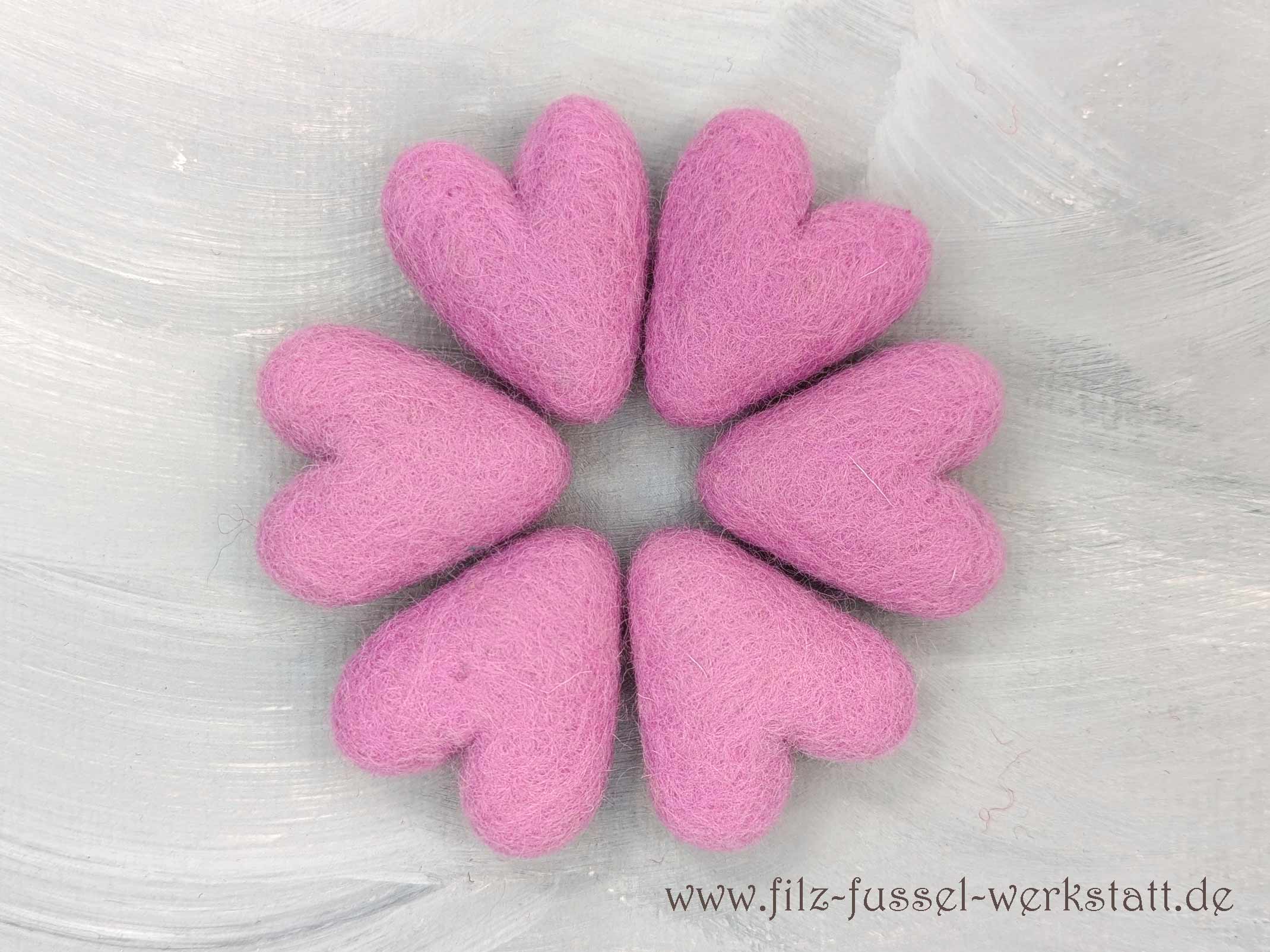Die rosafarbenen Herzen sind aus 100% Wolle (Filzwolle) handgefilzt und eignen sich hervorragend zum Basteln und Dekorieren. Aus den schönen Filzherzen - auch in Kombination mit Filzkugeln - entstehen tolle Girlanden, Mobile, Schlüsselanhänger, Weihnachtsschmuck oder sie zieren einfach als schöne Farbpunkte die Dekoration auf einem Tisch. Auch an einem Mobile machen sich die Filzsterne wunderbar.
