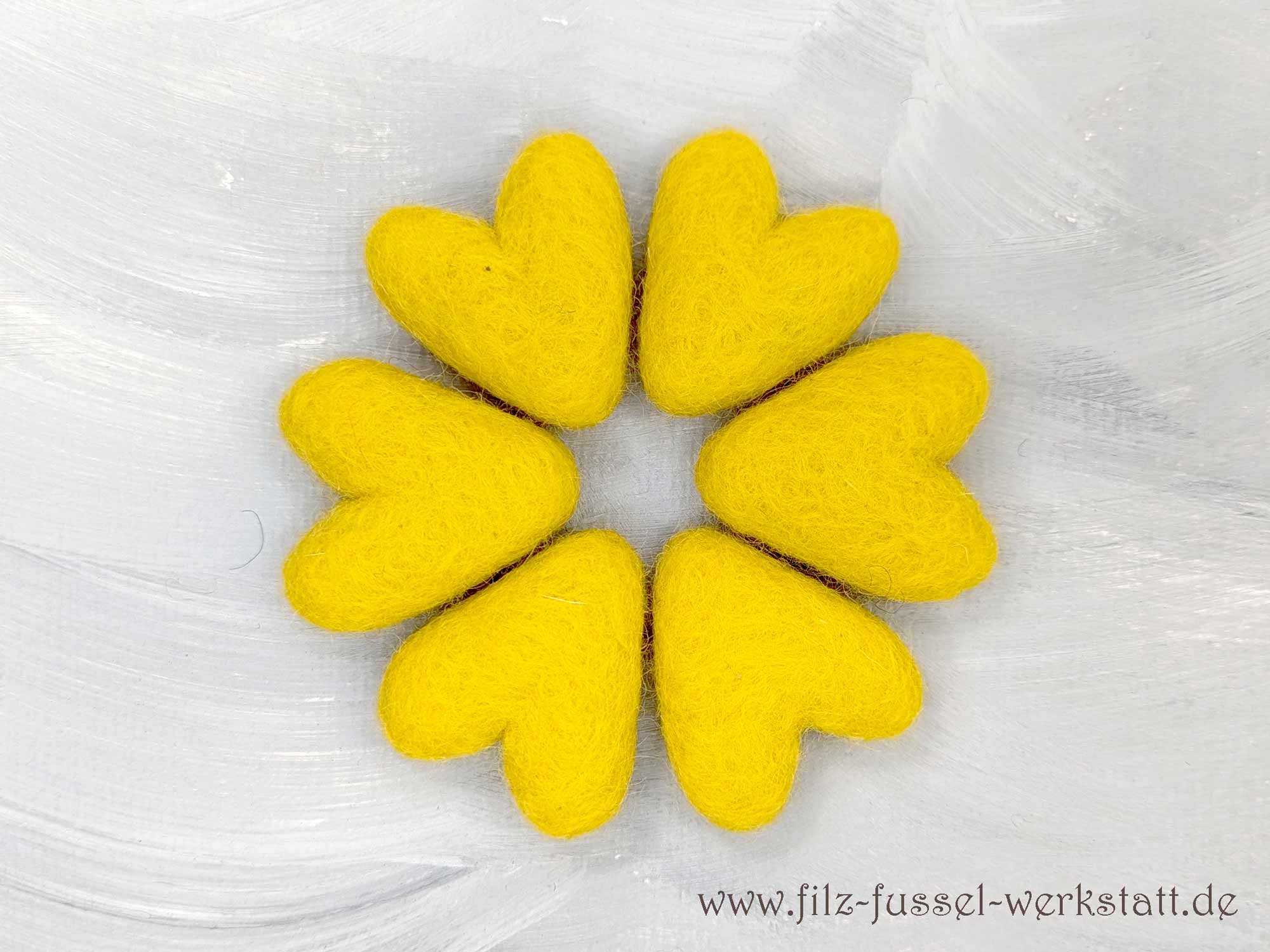 Die sonnengelben Herzen sind aus 100% Wolle (Filzwolle) handgefilzt und eignen sich hervorragend zum Basteln und Dekorieren. Aus den schönen Filzherzen - auch in Kombination mit Filzkugeln - entstehen tolle Girlanden, Mobile, Schlüsselanhänger, Weihnachtsschmuck oder sie zieren einfach als schöne Farbpunkte die Dekoration auf einem Tisch. Auch an einem Mobile machen sich die Filzsterne wunderbar.