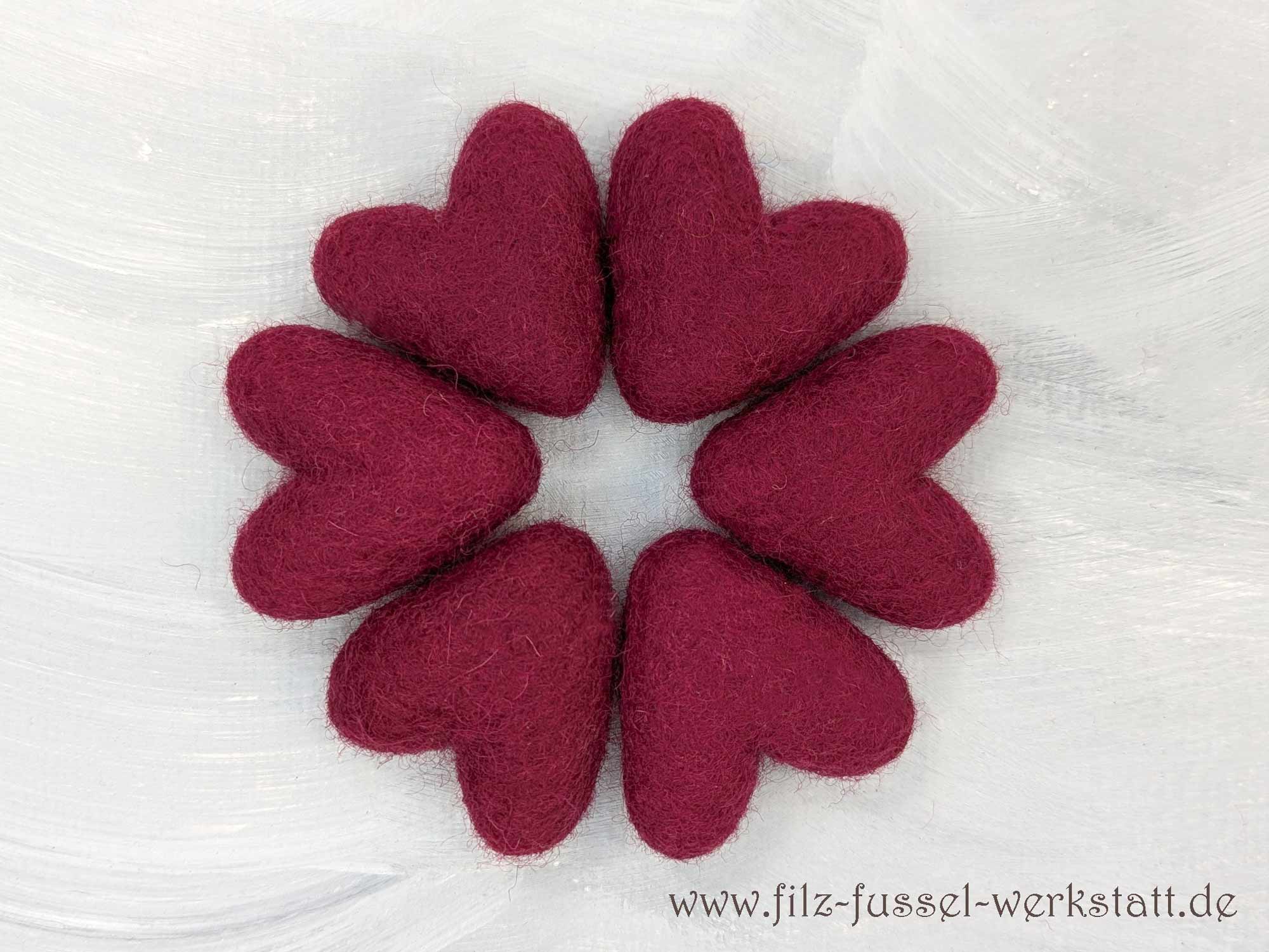 Die weinrot Herzen sind aus 100% Wolle (Filzwolle) handgefilzt und eignen sich hervorragend zum Basteln und Dekorieren. Aus den schönen Filzherzen - auch in Kombination mit Filzkugeln - entstehen tolle Girlanden, Mobile, Schlüsselanhänger, Weihnachtsschmuck oder sie zieren einfach als schöne Farbpunkte die Dekoration auf einem Tisch. Auch an einem Mobile machen sich die Filzsterne wunderbar.