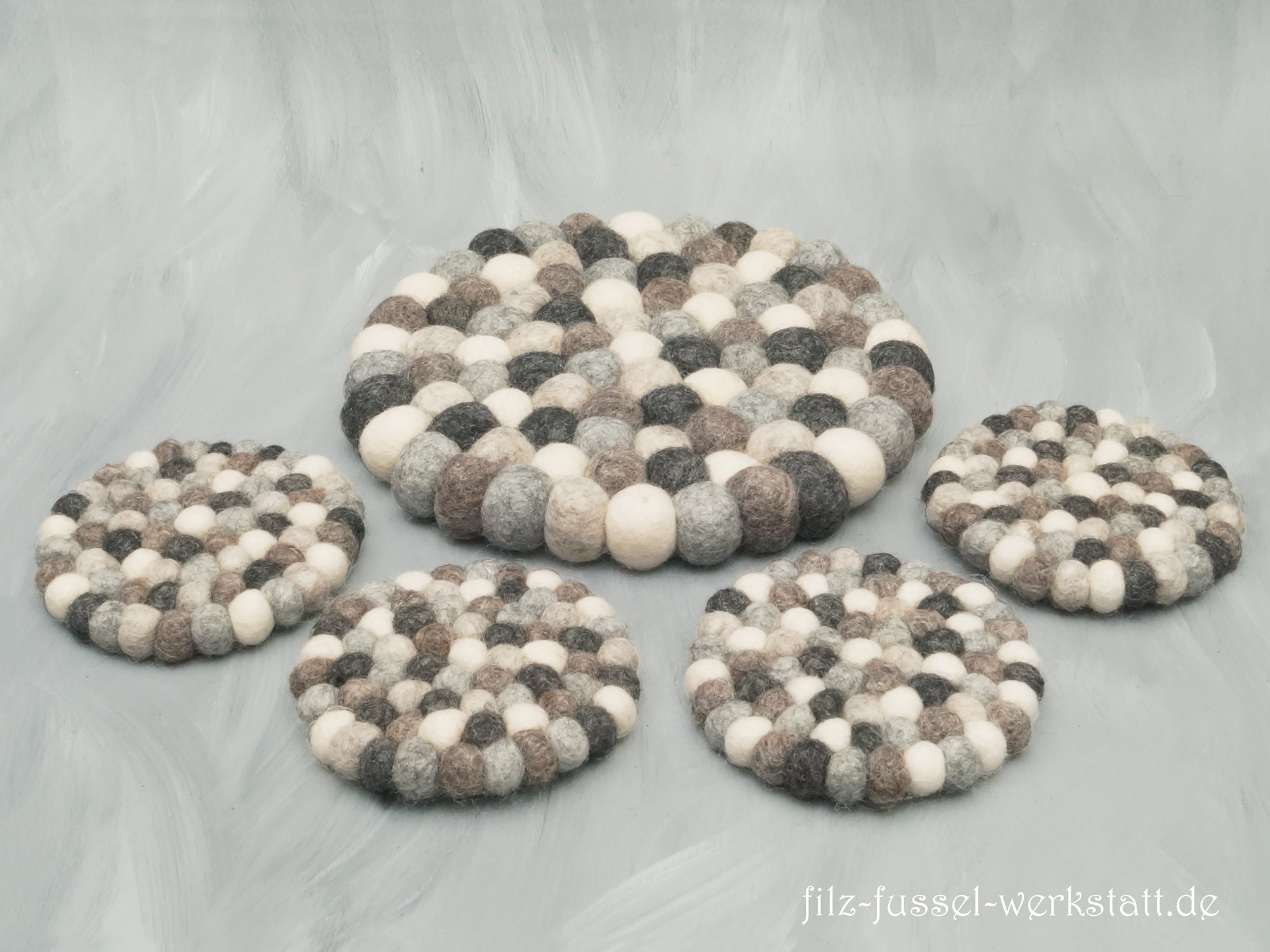 Dieses graue Filzuntersetzer Set - bestehend aus vielen handgefilzten festen Filzkugeln - verzieren jeden Esstisch, ob zu Weihnachten, Geburtstagen, Taufen oder vielen anderen Anlässen...