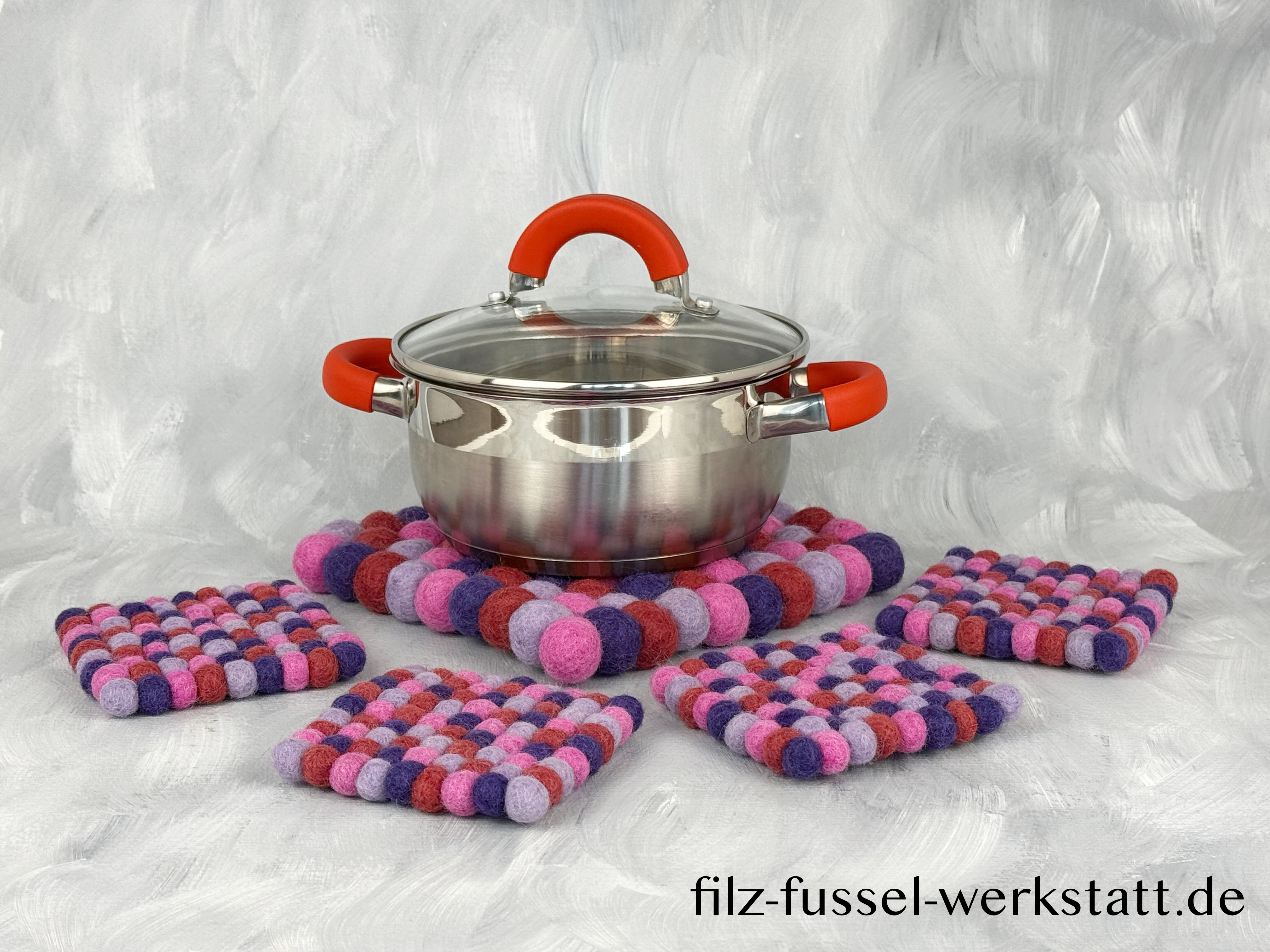 Filz, Untersetzer-Set, Tischdeko, Topfuntersetzer und Glasuntersetzer, lila/rosa, eckig, Ø 20 cm und Ø 10 cm