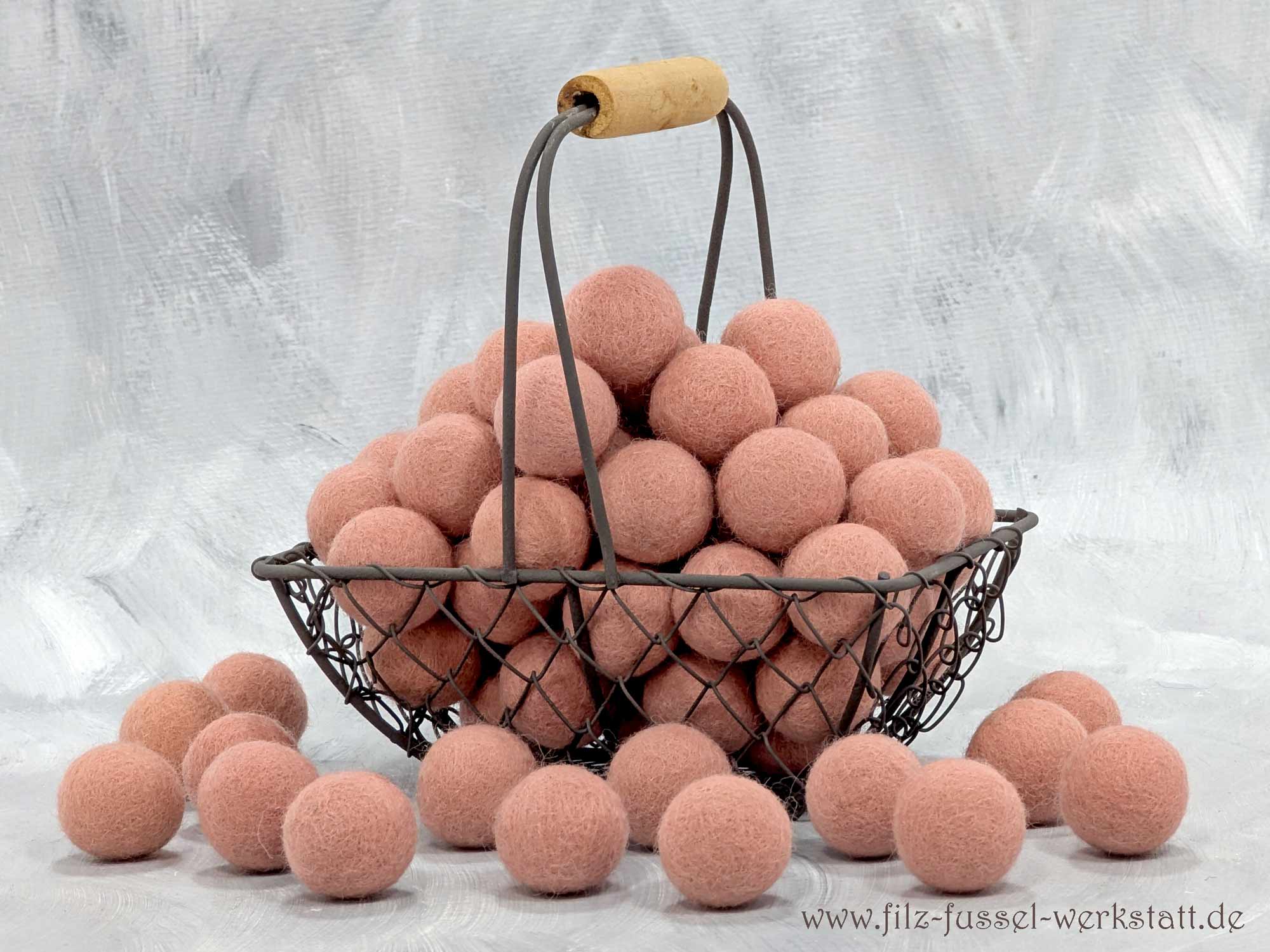 Die altrosafarbenen Filzkugeln / Filzperlen sind aus 100% Wolle (Filzwolle) handgefilzt und eignen sich hervorragend zum Basteln und Dekorieren. Aus den schönen Filzkugeln entstehen Girlanden, Mobile Schlüsselanhänger, Oster- und Weihnachtsschmuck oder sie zieren einfach als schöne Farbpunkte die Dekoration auf einem Tisch. Auch an einem Mobile machen sich die Filzkugeln wunderbar.