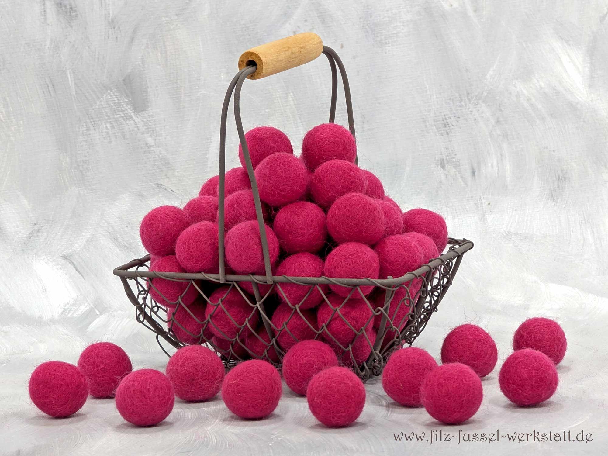 Die cyclamfarbenen Filzkugeln / Filzperlen sind aus 100% Wolle (Filzwolle) handgefilzt und eignen sich hervorragend zum Basteln und Dekorieren. Aus den schönen Filzkugeln entstehen Girlanden, Mobile Schlüsselanhänger, Oster- und Weihnachtsschmuck oder sie zieren einfach als schöne Farbpunkte die Dekoration auf einem Tisch. Auch an einem Mobile machen sich die Filzkugeln wunderbar.