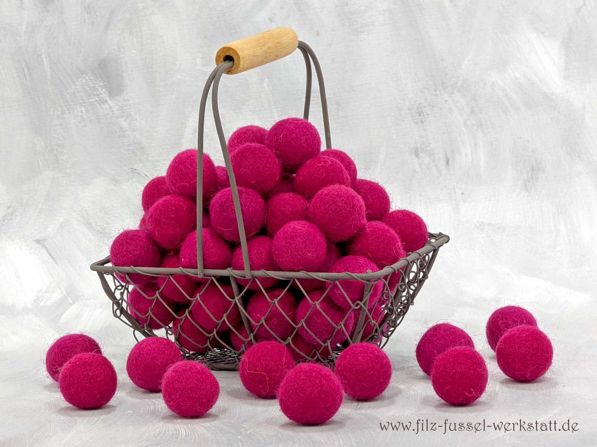 Die oleanderfarbenen Filzkugeln / Filzperlen sind aus 100% Wolle (Filzwolle) handgefilzt und eignen sich hervorragend zum Basteln und Dekorieren. Aus den schönen Filzkugeln entstehen Girlanden, Mobile Schlüsselanhänger, Oster- und Weihnachtsschmuck oder sie zieren einfach als schöne Farbpunkte die Dekoration auf einem Tisch. Auch an einem Mobile machen sich die Filzkugeln wunderbar.