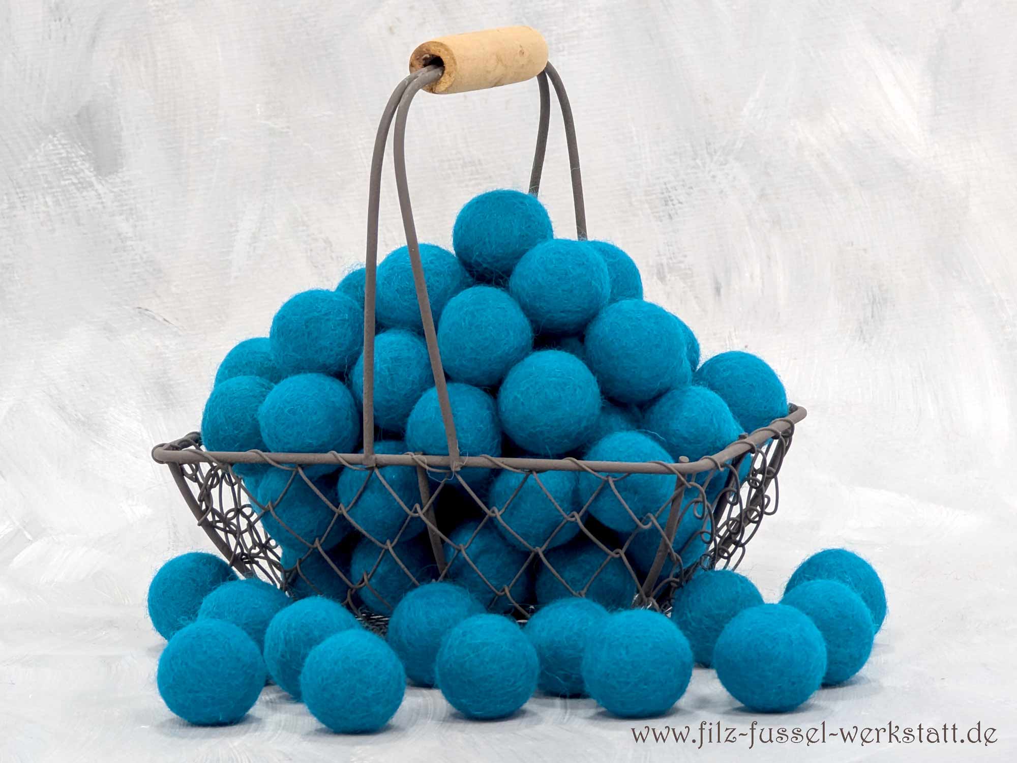 Die ozeanblauen Filzkugeln / Filzperlen sind aus 100% Wolle (Filzwolle) handgefilzt und eignen sich hervorragend zum Basteln und Dekorieren. Aus den schönen Filzkugeln entstehen Girlanden, Mobile Schlüsselanhänger, Oster- und Weihnachtsschmuck oder sie zieren einfach als schöne Farbpunkte die Dekoration auf einem Tisch. Auch an einem Mobile machen sich die Filzkugeln wunderbar.