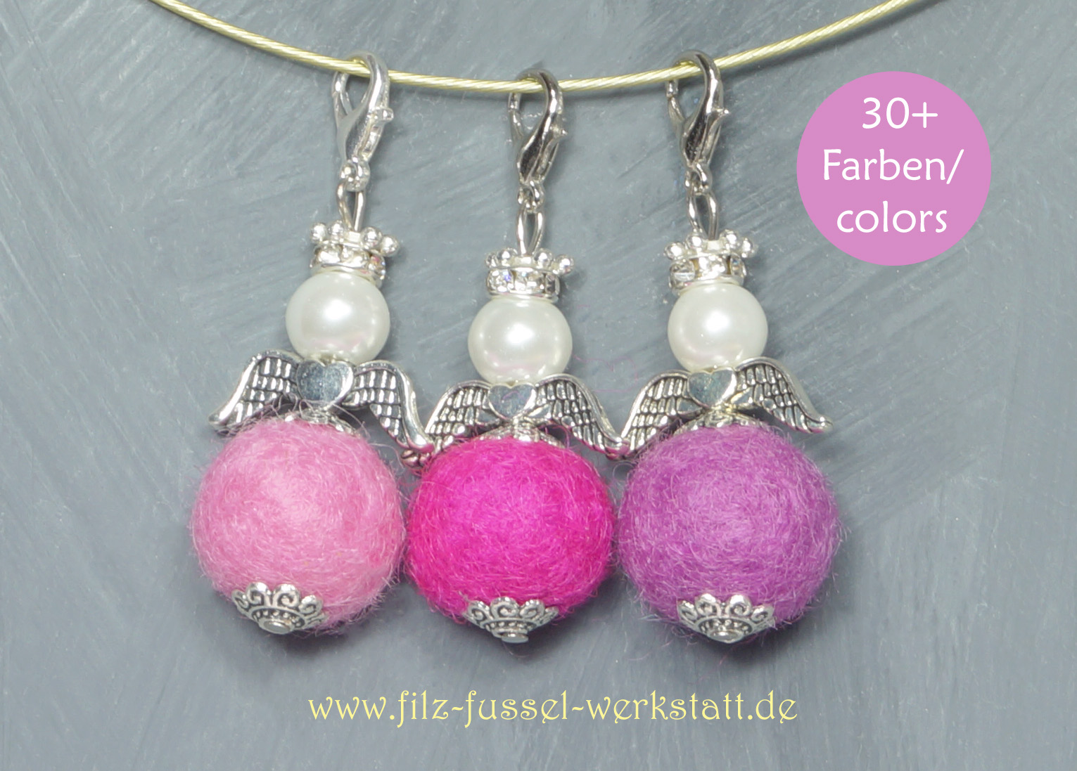 Möchtest Du andere Filzkugelfarben als auf dem Titelbild, so teile sie mir diese bitte im Feld "Nachrichten zum Artikel" mit. Gerne stelle ich Dir Deine(n) individuelle(n) Schutzengel-Anhänger zusammen.