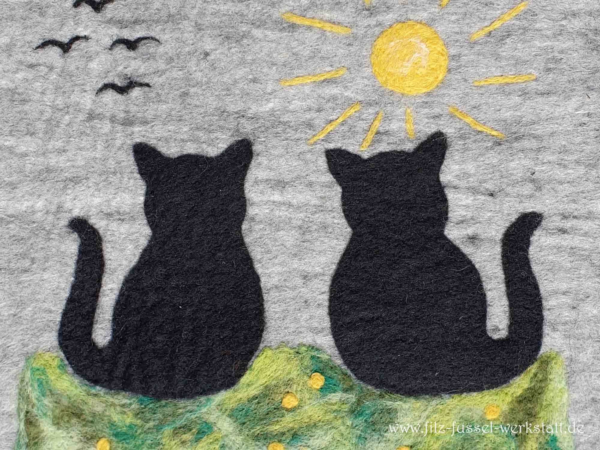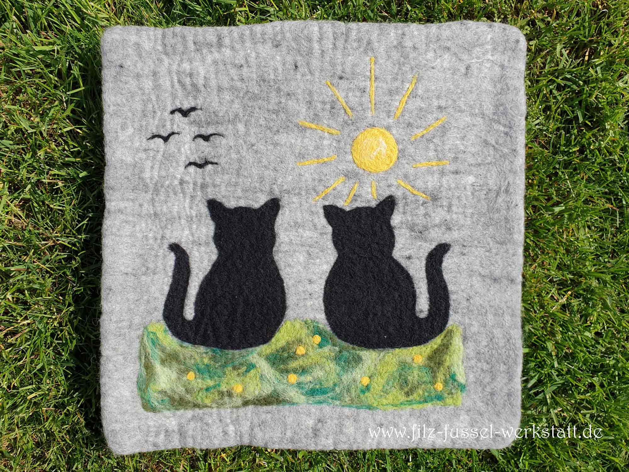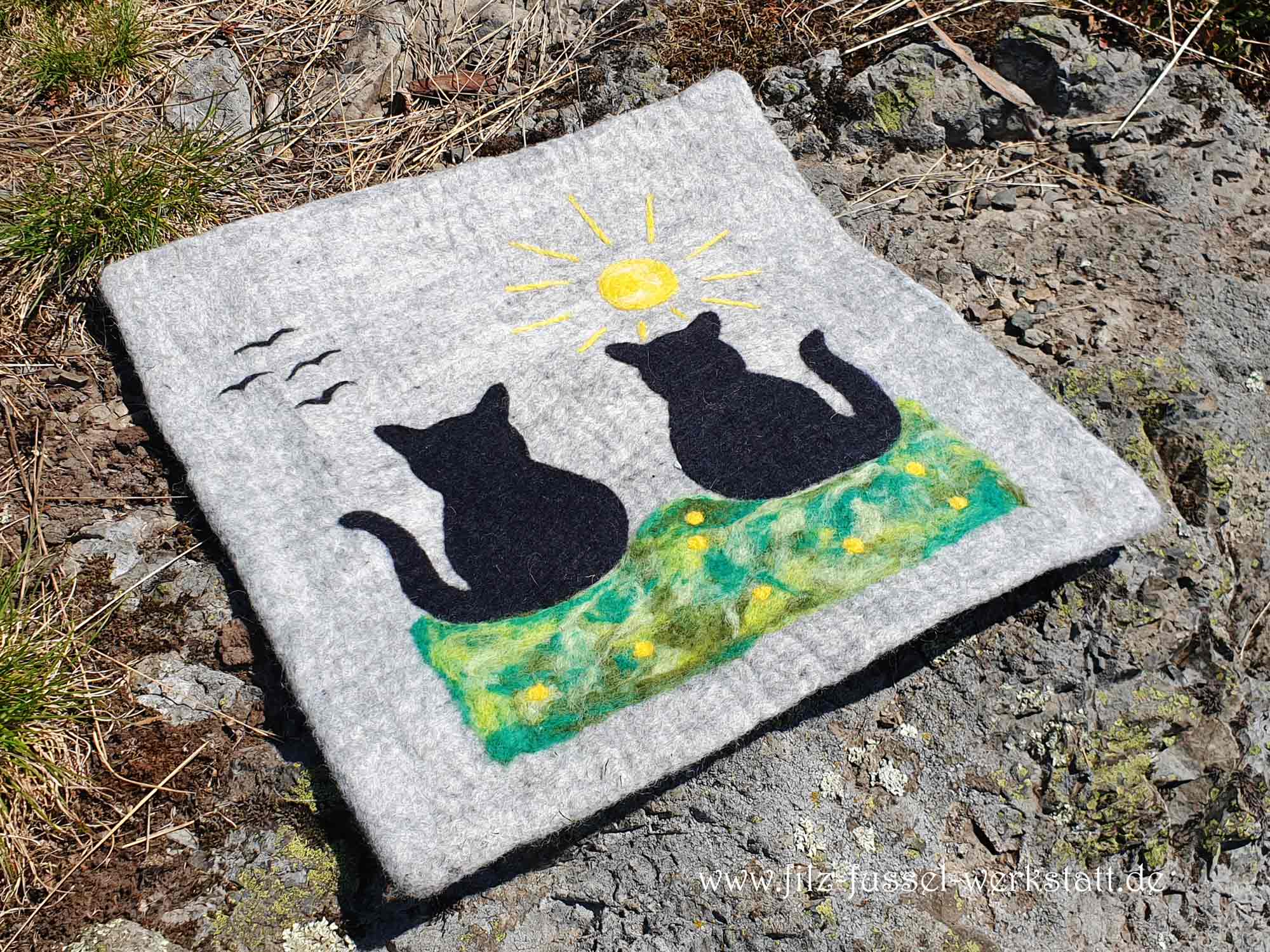Das handgefilzte, einrollbare Sitzkissen mit einem schönen Katzenmotiv, einer Sonne oder mit einem Herz sorgt für vielfältige Einsatzmöglichkeiten im Freien. Egal ob Du wanderst, oder einfach nur eine Sitzunterlage für unterwegs benötigst, das Sitzkkissen To-Go ist wasserabweisend, leicht und bietet eine angenehme, warme Sitzgelegenheit. Du kannst es einfach zusammenrollen, in Deinen Rucksack packen und überall mit hinnehmen.
